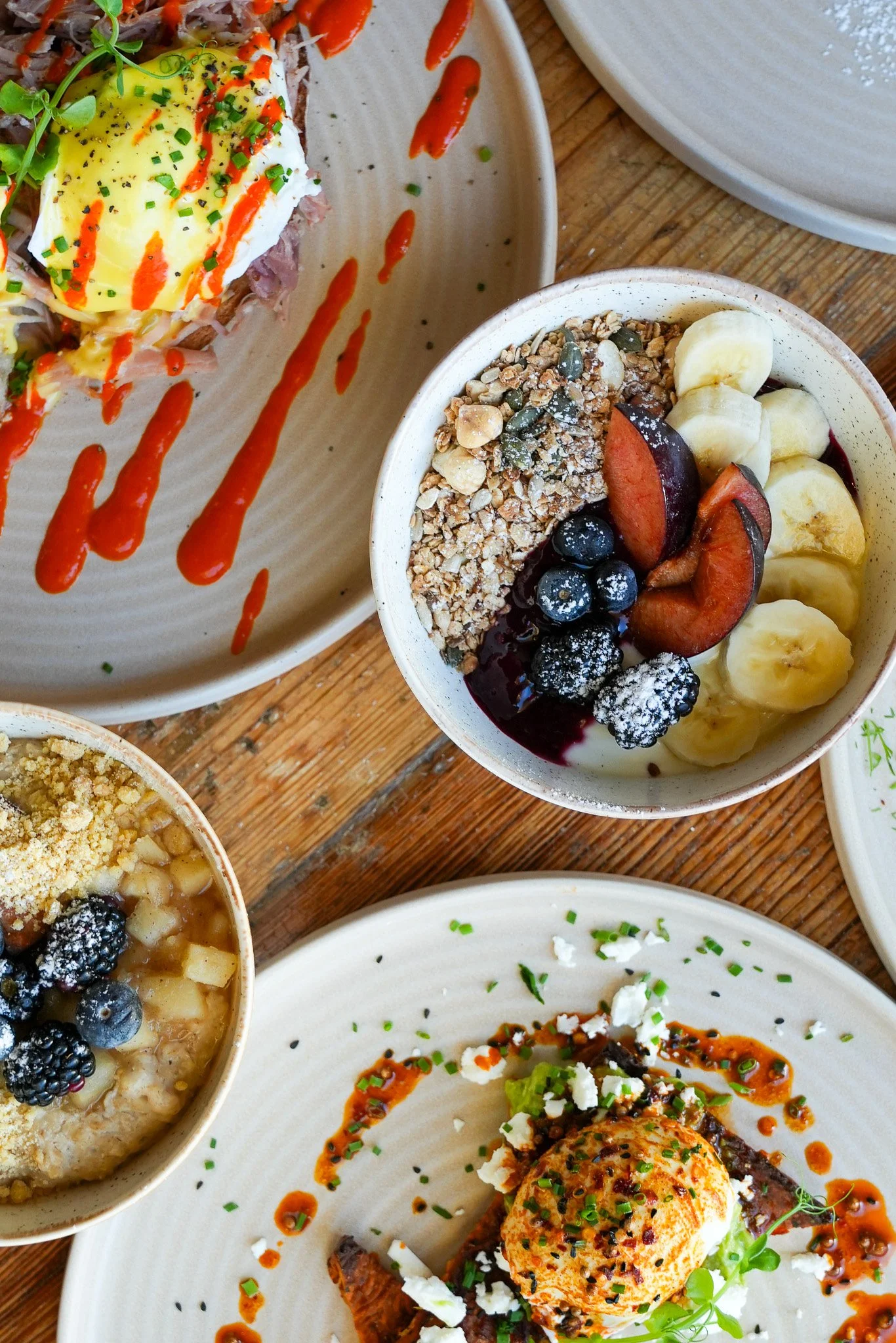 Turkish Eggs €15 Ballyfin Farm poached eggs, garlic labneh, fresh dill, Aleppo chilli butter, dukkah, aubergine on sourdough toast. Contains gluten, dairy, eggs, nuts, sesame.