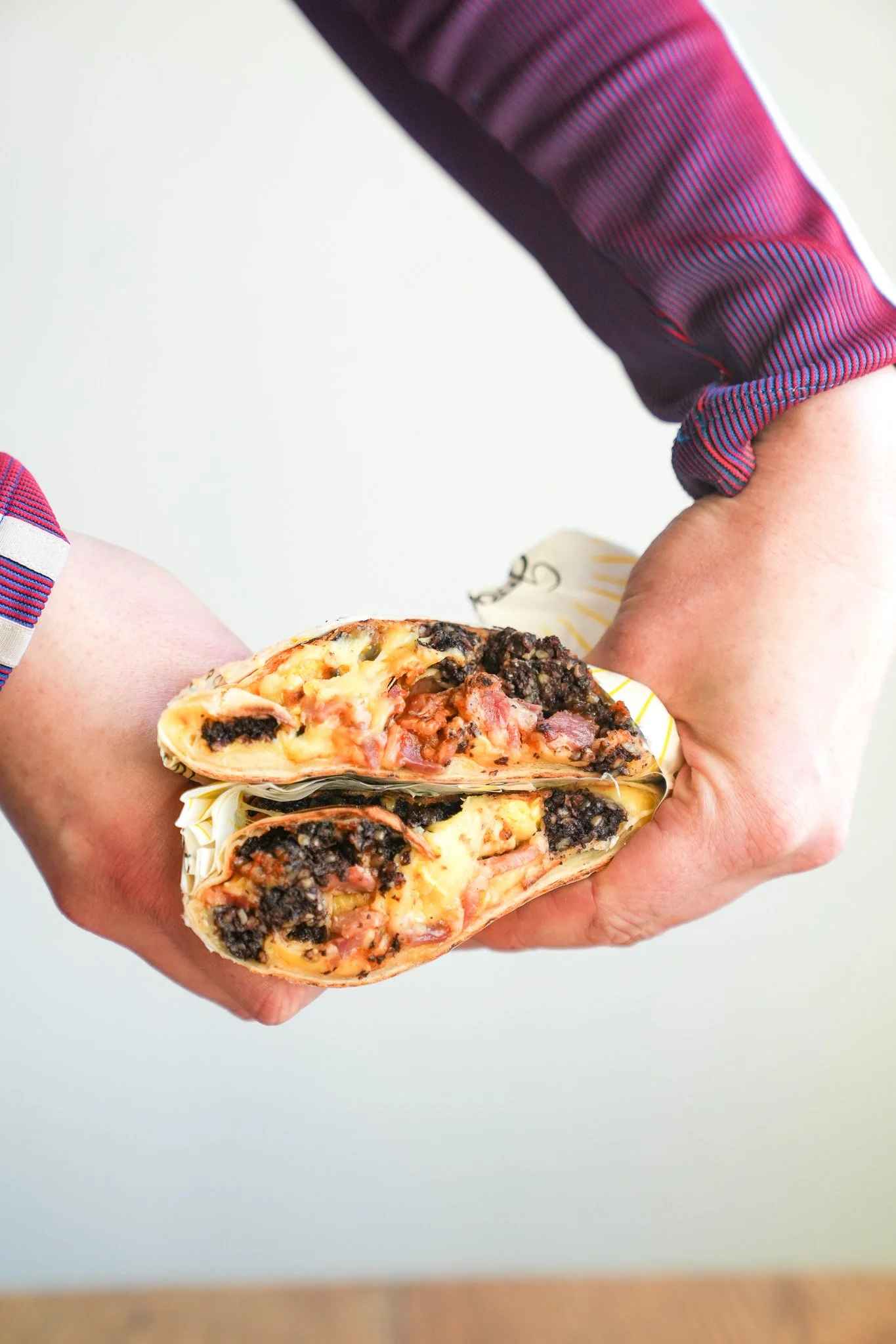 Breakfast burrito €14 GFTS relish, bacon, Clonakilty black pudding, Ballyfin Farm scrambled eggs, housemade beans & cheddar in a tortilla wrap. Contains gluten, sulphite, eggs, dairy.