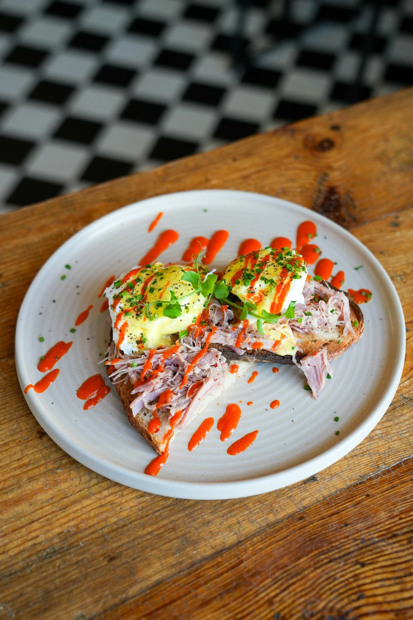 Fiery Benedict €15 Slow cooked honey and mustard glazed ham, Ballyfin Farm poached eggs, hollandaise, GFTS hot sauce on sourdough toast. Contains gluten, eggs, dairy, sulphites.